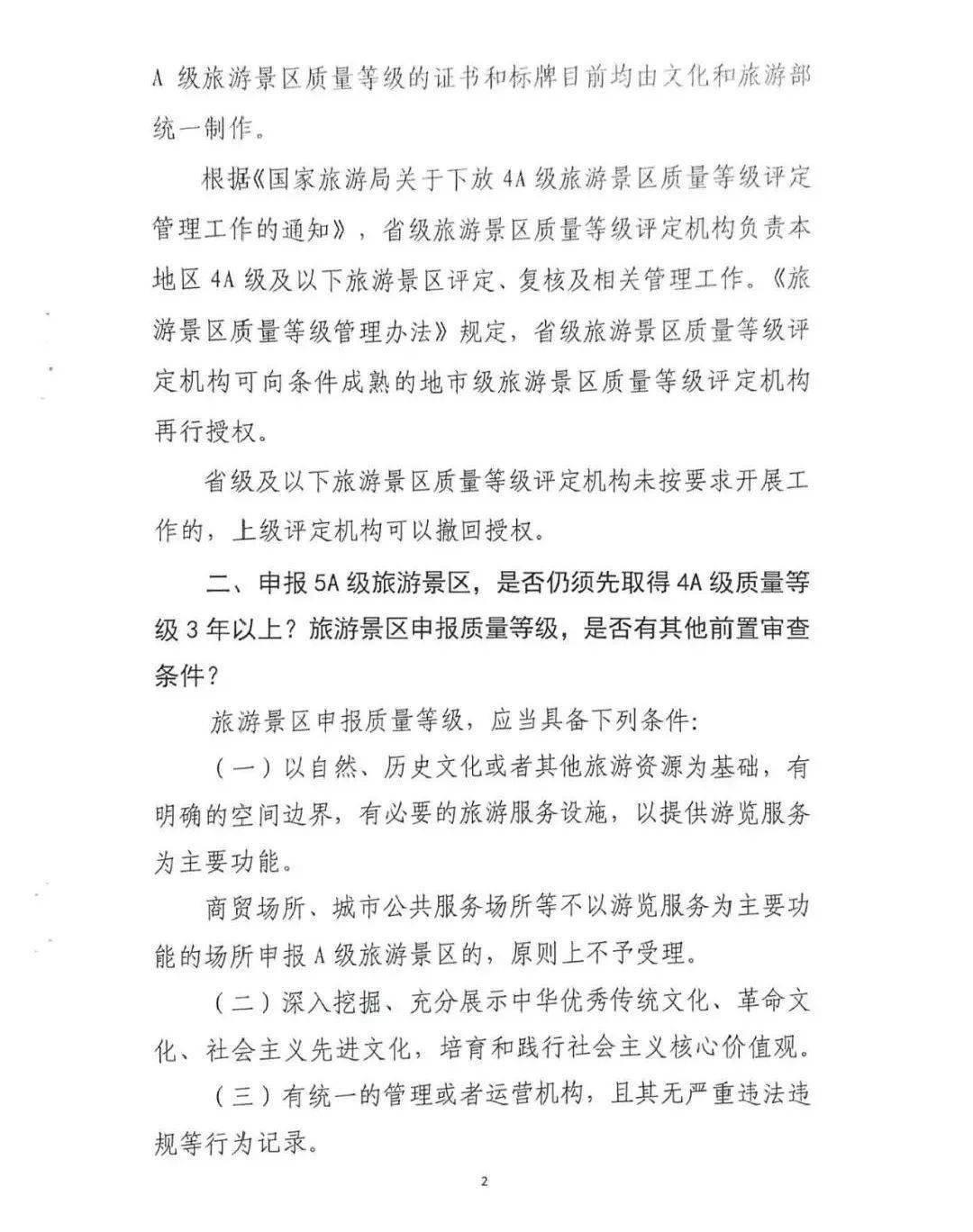 文旅部资源司《关于对旅游景区质量等级管理工作中若干问题的解释》(资源函〔2020〕27号)