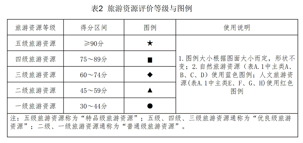 依据旅游资源单体评价总分,将旅游资源评价划分为五个等级。